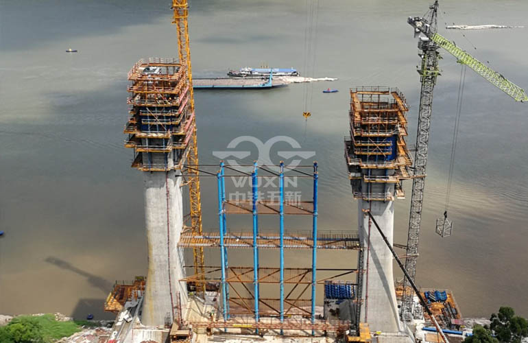 淮北相王大橋主塔爬模(主塔傾斜角度大,角度為30°)